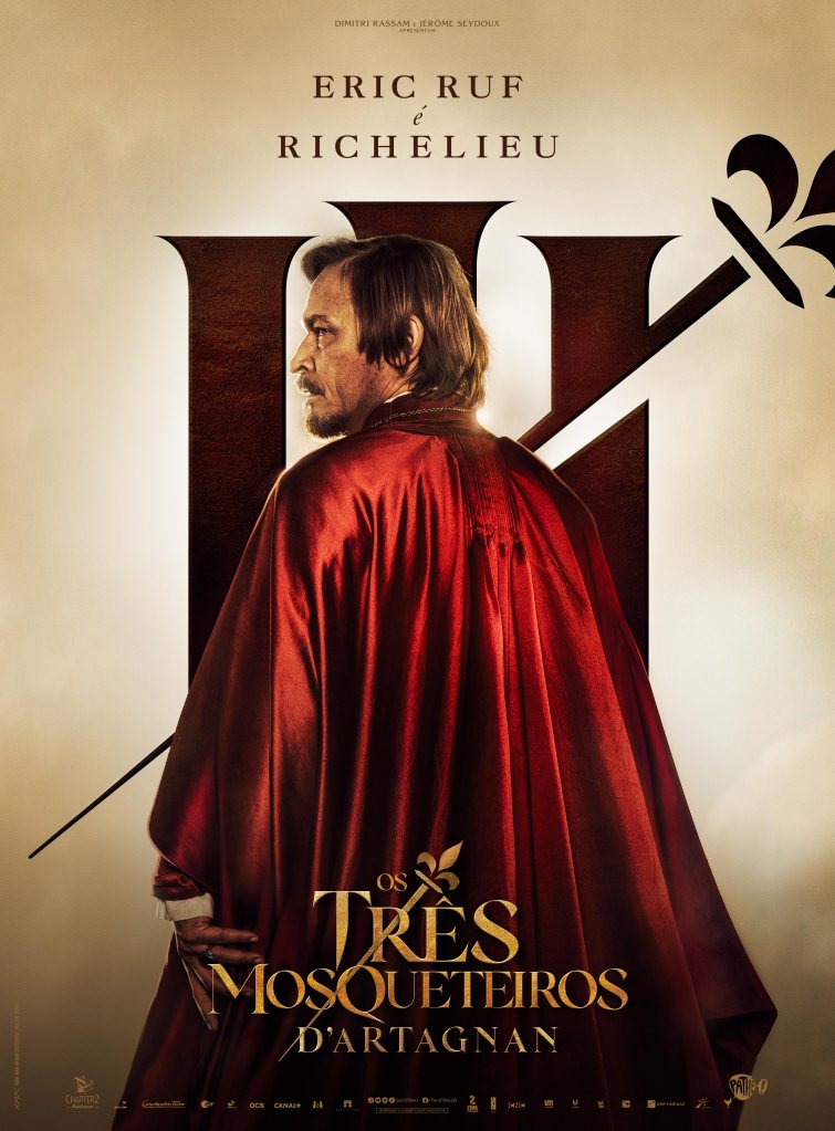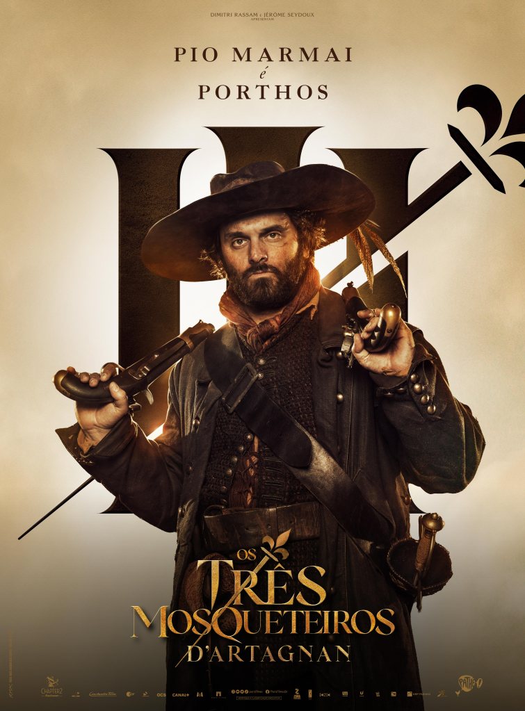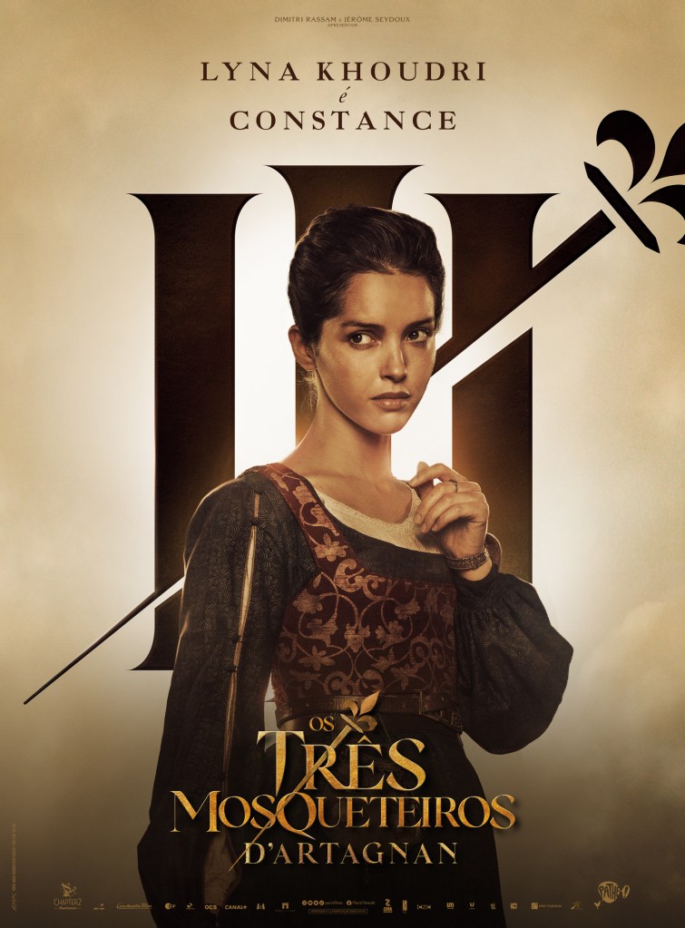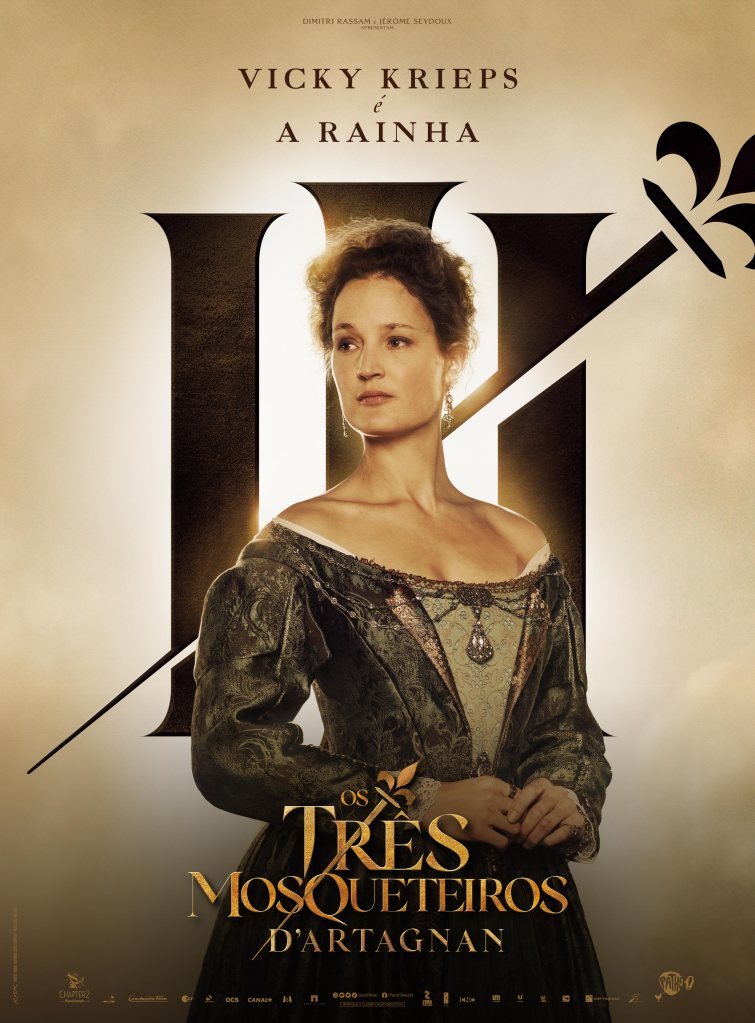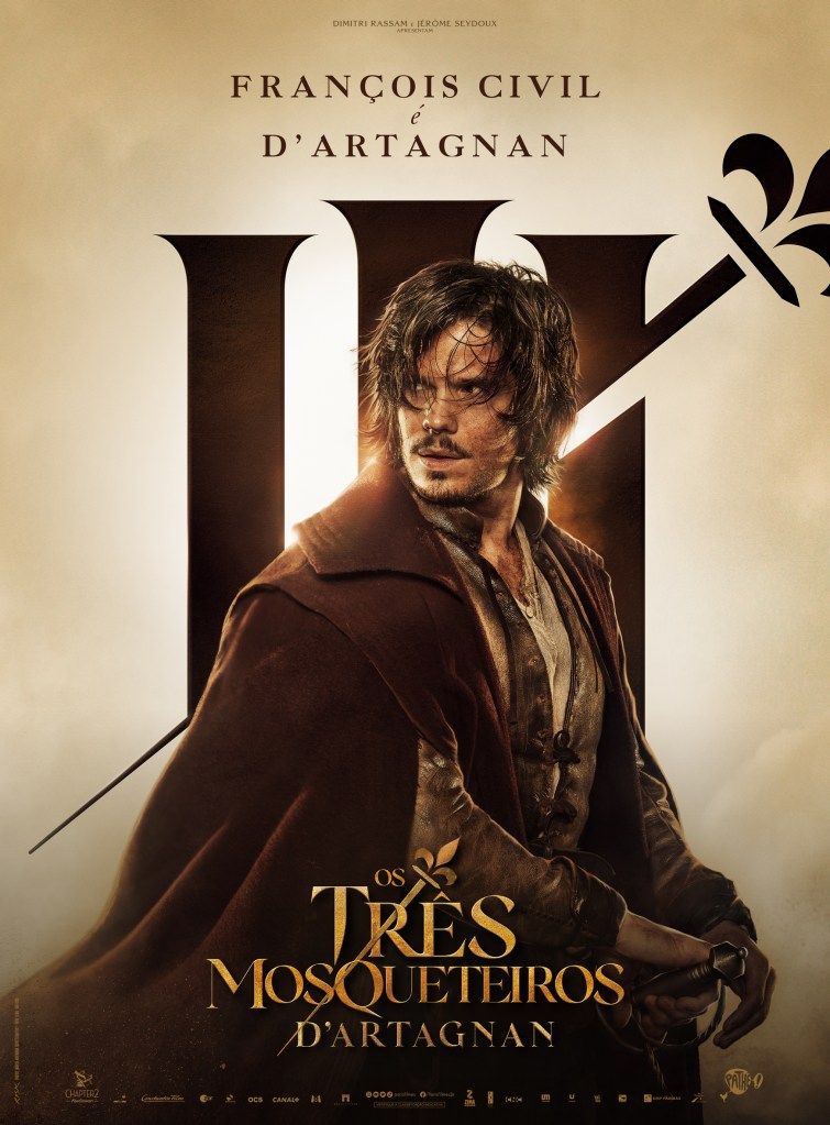 As artes destacam os personagens de François Civil (D’Artagnan), Vincent Cassel, Pio Marmaï e Roman Duris, que dão vida aos três mosqueteiros Athos, Porthos e Aramis; além de Eva Green (Milady). O filme estreia em abril