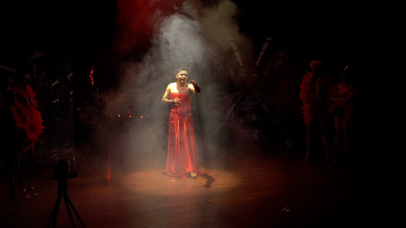 Há os exageros do musical, porém a apresentação consegue incorporar todos esses elementos, seja nas músicas ou nos bons diálogos que acompanhamos. Tudo é bem encenado e montado.