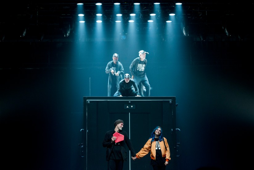O cenário que é uma grande caixa facilita esses momentos, pode ser facilmente moldável pelos atores que não estão em cena, para mostrar o apartamento de um deles, a livraria que Celine trabalha ou momentos do elevador com Jessie e seu vizinho.