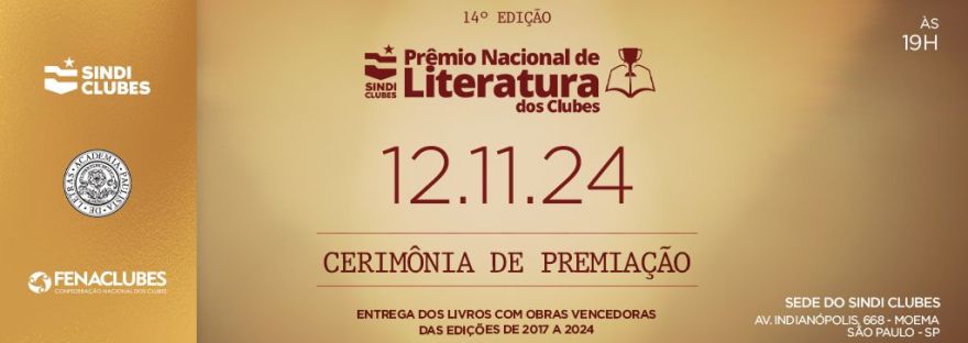 Inscrições abertas para a 15° edição do Prêmio Nacional de Literatura dos Clubes em parceria com a Academia Paulista de Letras.